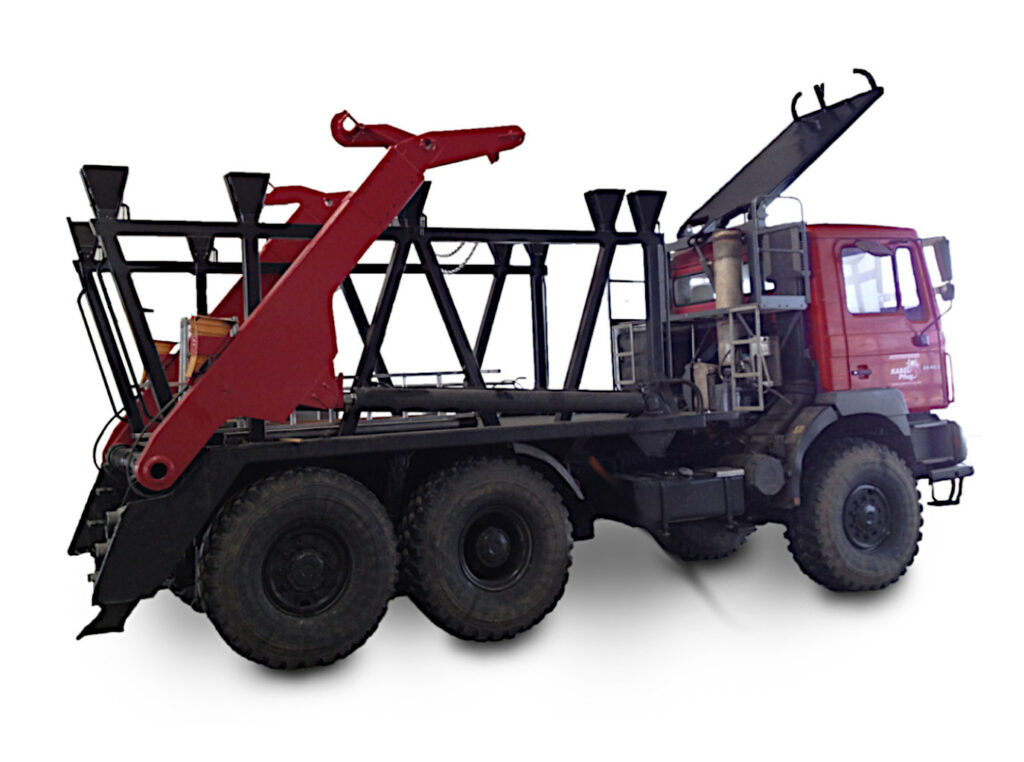 En la estructura del camión se ha incorporado además una función de compensación de inclinación (función Tilt), similar a la que incorporan, por ejemplo, los camiones con cabrestante de Föckersperger. Se pueden recoger y transportar de forma autónoma bobinas de cable con un peso de hasta 6,5 t cada una.